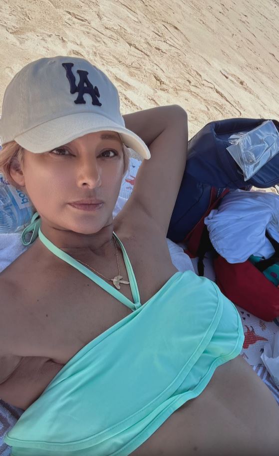 右胸の全摘出術を受けた後にも、手術の傷を隠すことなく水着姿をアップしています。